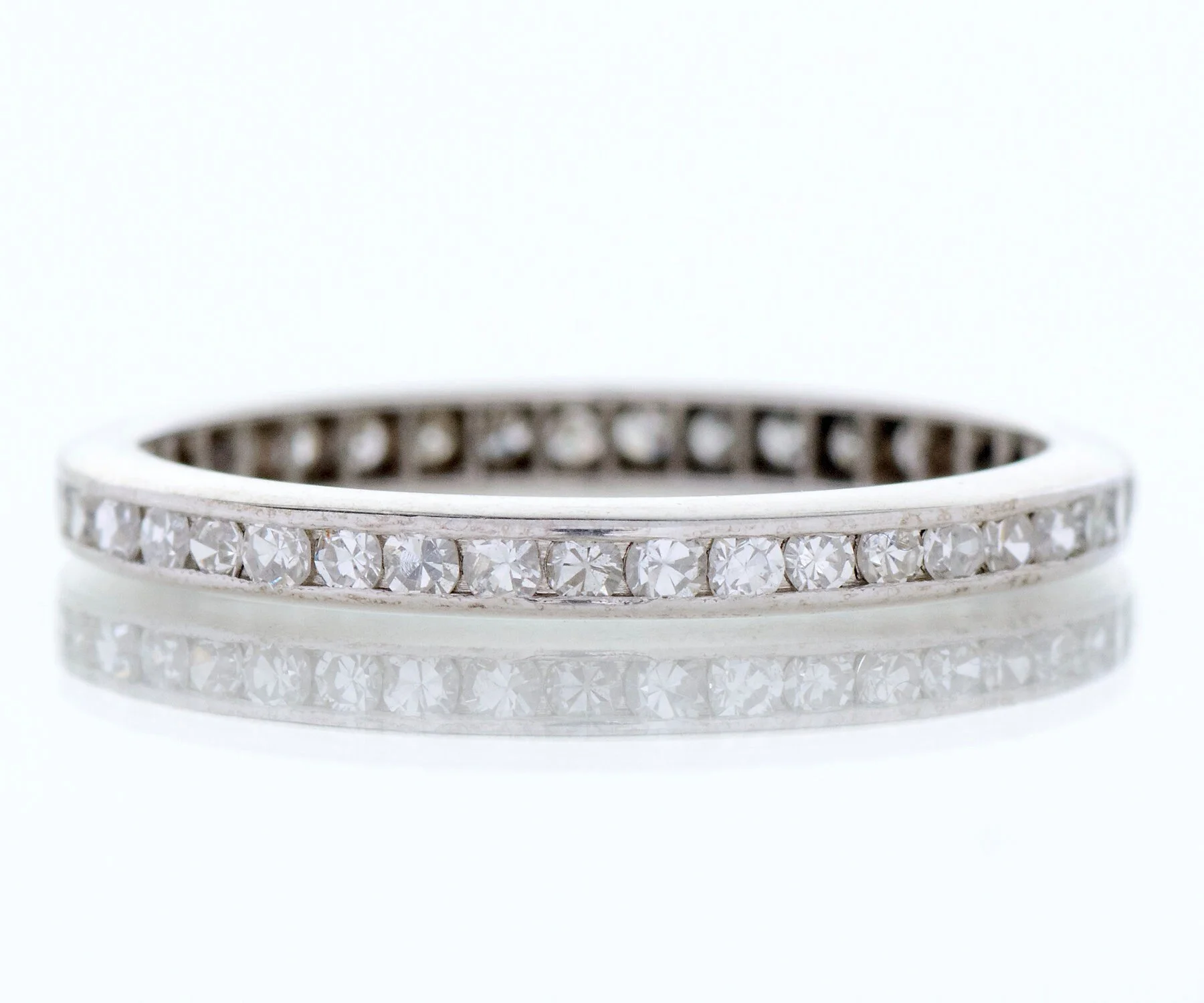 Antique Wedding Band - Antique Platinum 1/2 ctw Diamond Eternity Band Art Deco Platinum 41 Single Cut Diamonds =1/2ct VS1-SI1/H-J Ring Size 4.75 Band measures approximately 2mm wide.