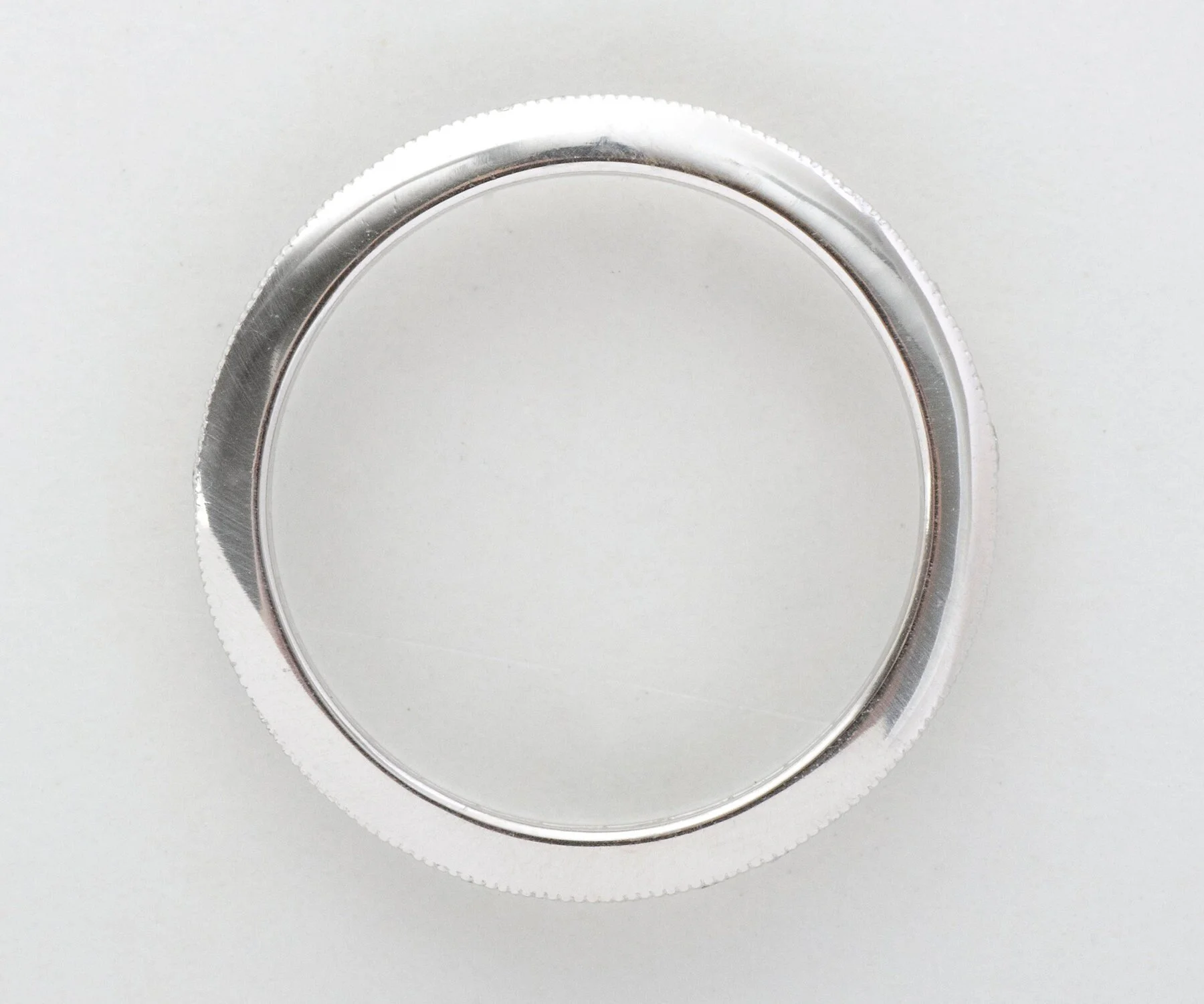 A carats worth of glorious diamonds are on display in this beautiful antique platinum wedding band with crisp milgrain edging on either side. This charming ring can stand alone or be paired up with your engagement ring of any era. Perfect as well for a special anniversary!