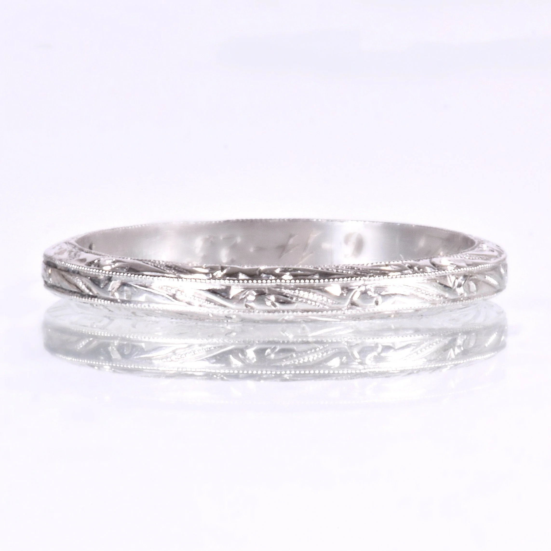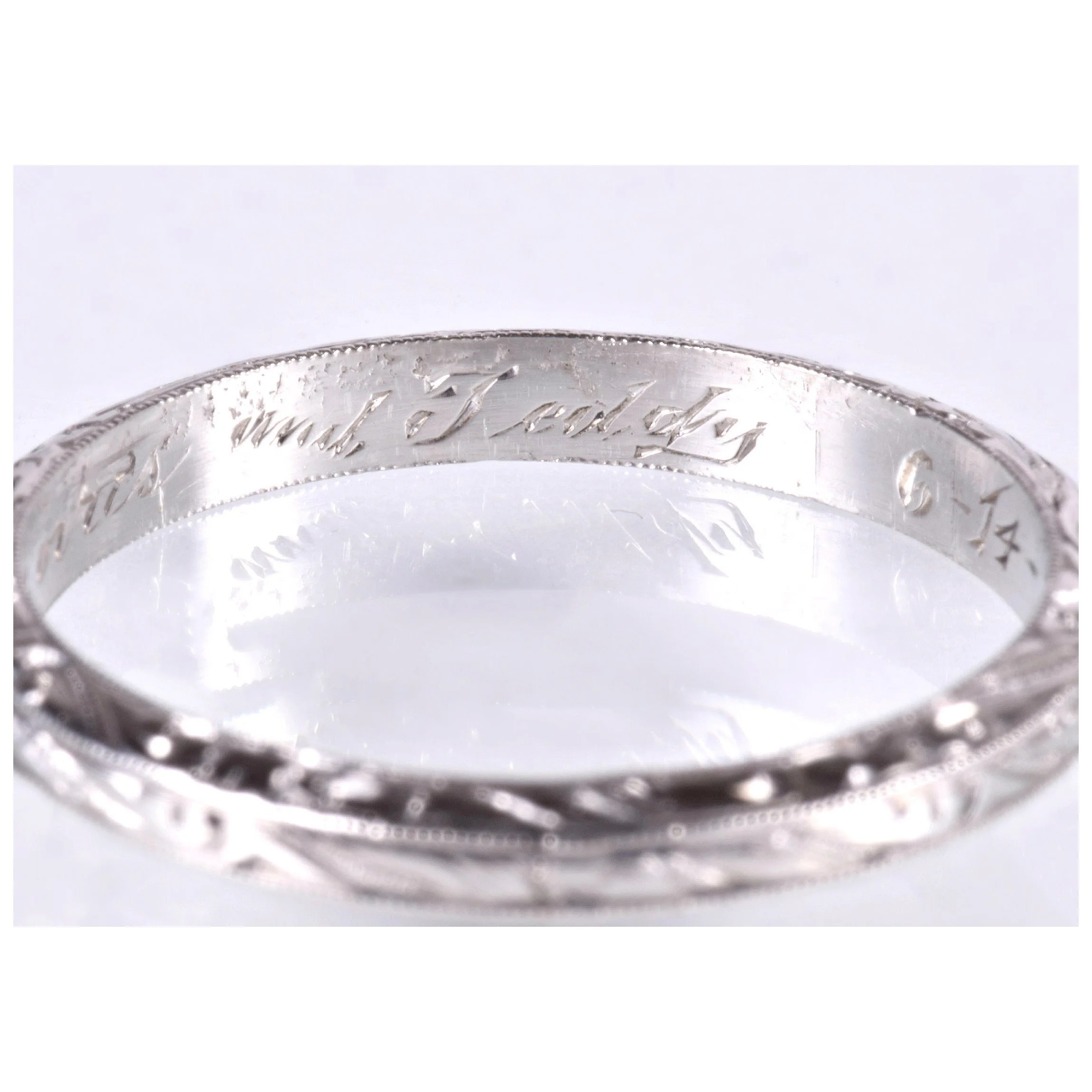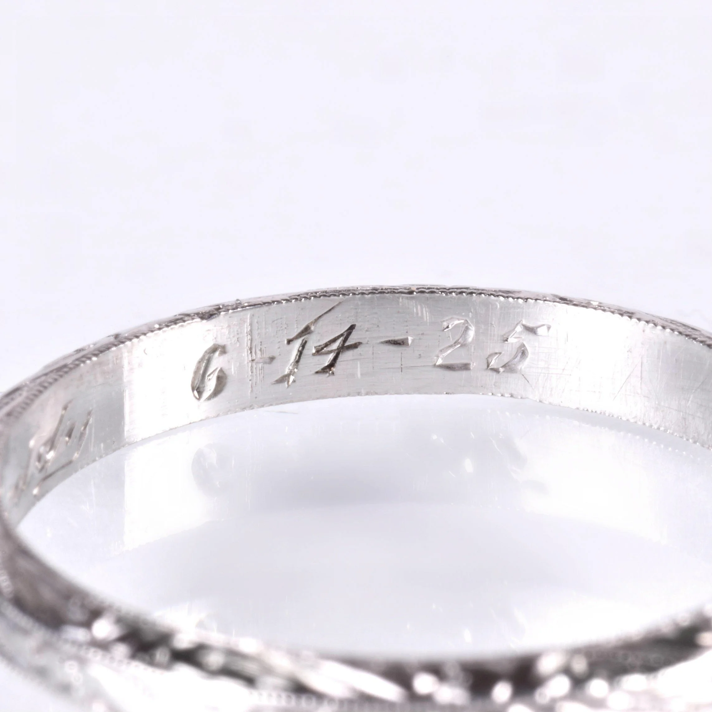 Antique Wedding Band - Antique Platinum Date Engraved "6-14-25" Wedding Band