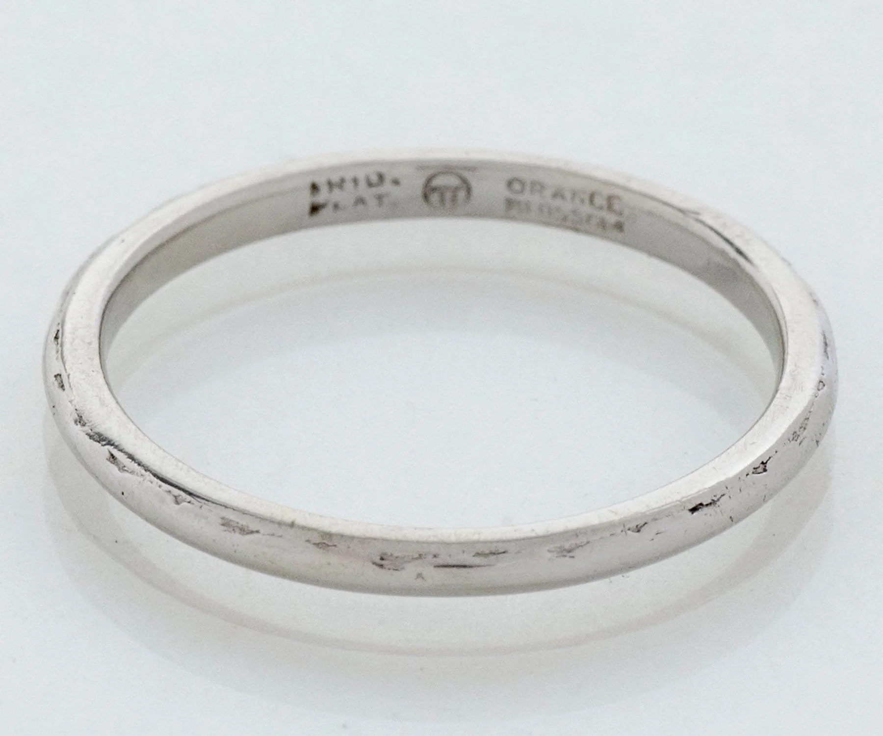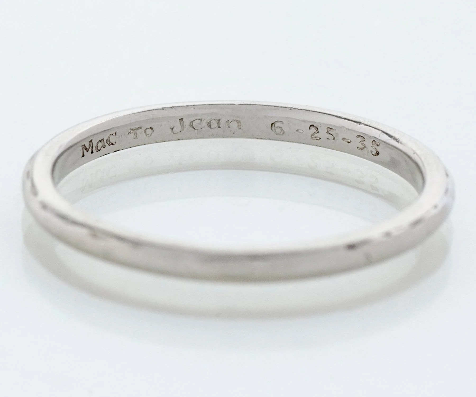 Antique Wedding Band - Antique Platinum Dated 1935 Wedding Band Platinum Stamped Orange Blossom Engraved "MAC to JEAN 6-25-35" Ring Size 5.5 (sizable) Band is 1.6mm wide.