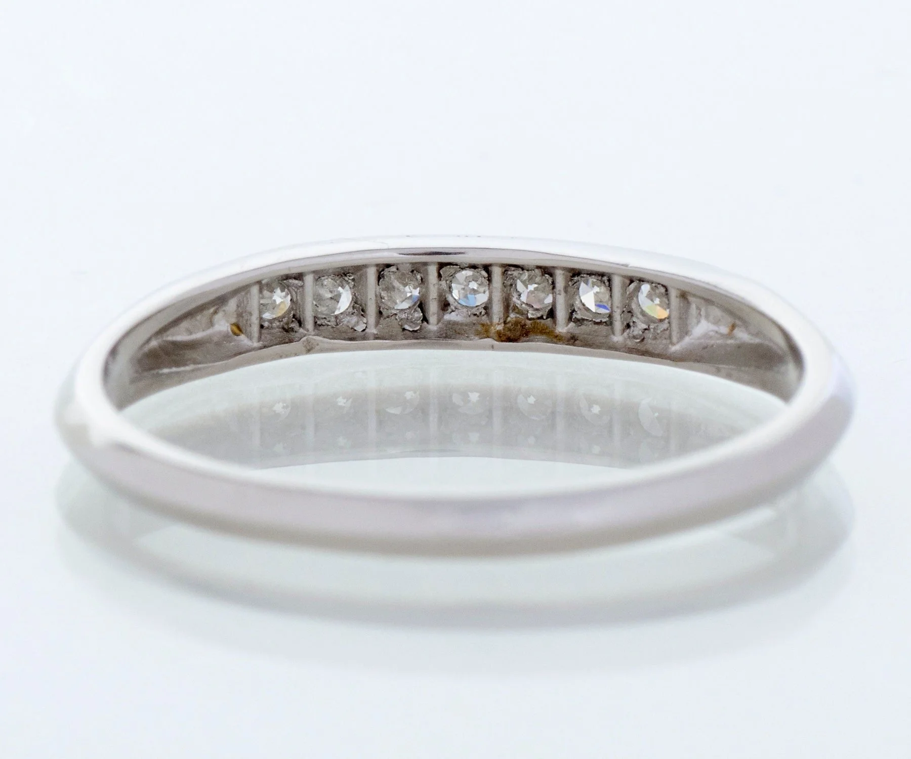 Antique Wedding Band - Antique Platinum Diamond Wedding Band Platinum 7 Single Cut Diamonds =.12ct VS1-SI1/G-H Ring Size 6 (sizable) Band measures approximately 2.7mm wide at center, back of band is 1.7mm wide.