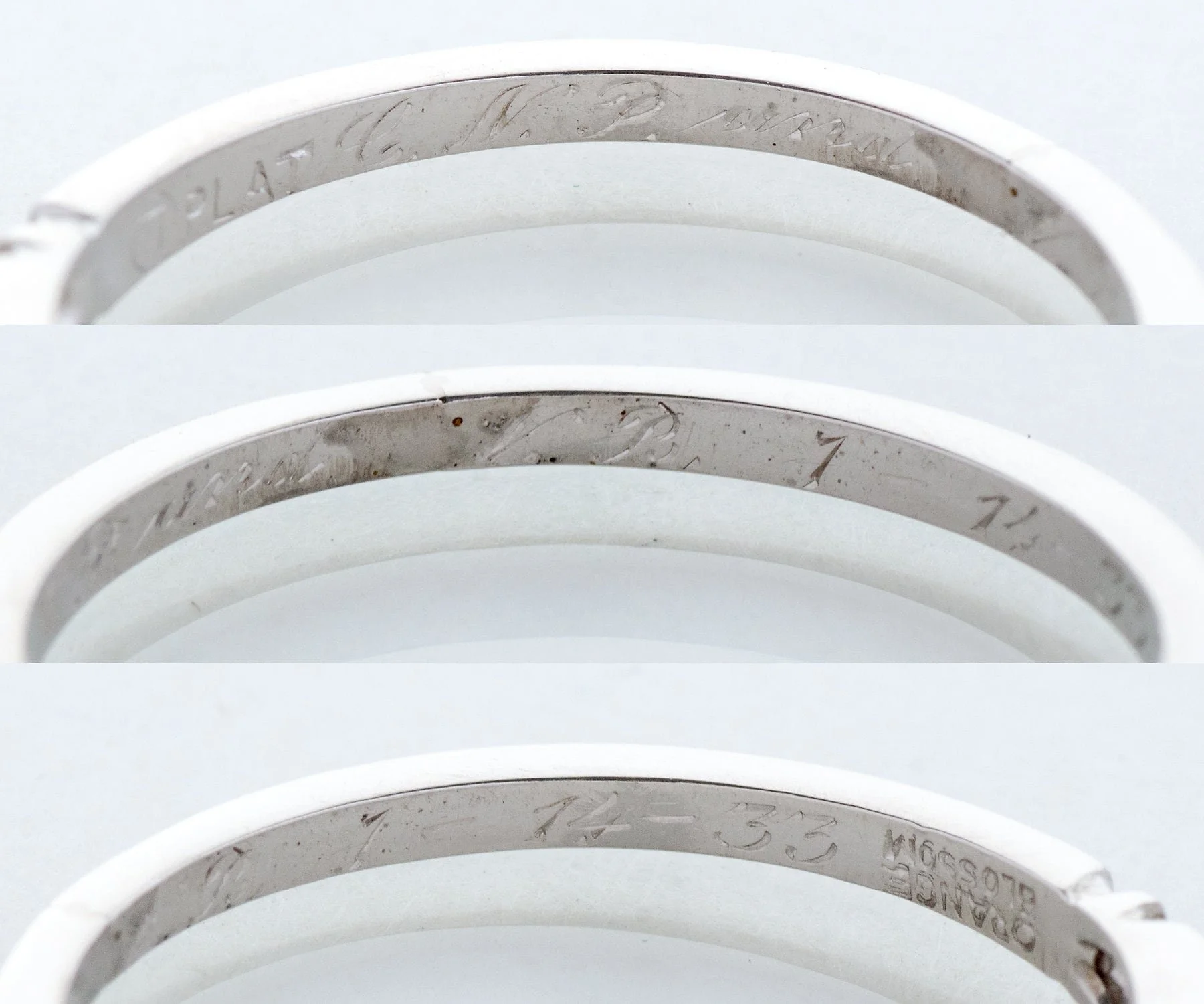 Antique Wedding Band - Antique Platinum Engraved "1933" Diamond Wedding Band Platinum 6 Single Cut Diamonds =.08ct VS/G-H Engraved "1-14-33" Ring Size 6 (sizable) Band measures approximately 2.3mm wide at center, back of band is 1.3mm wide.
