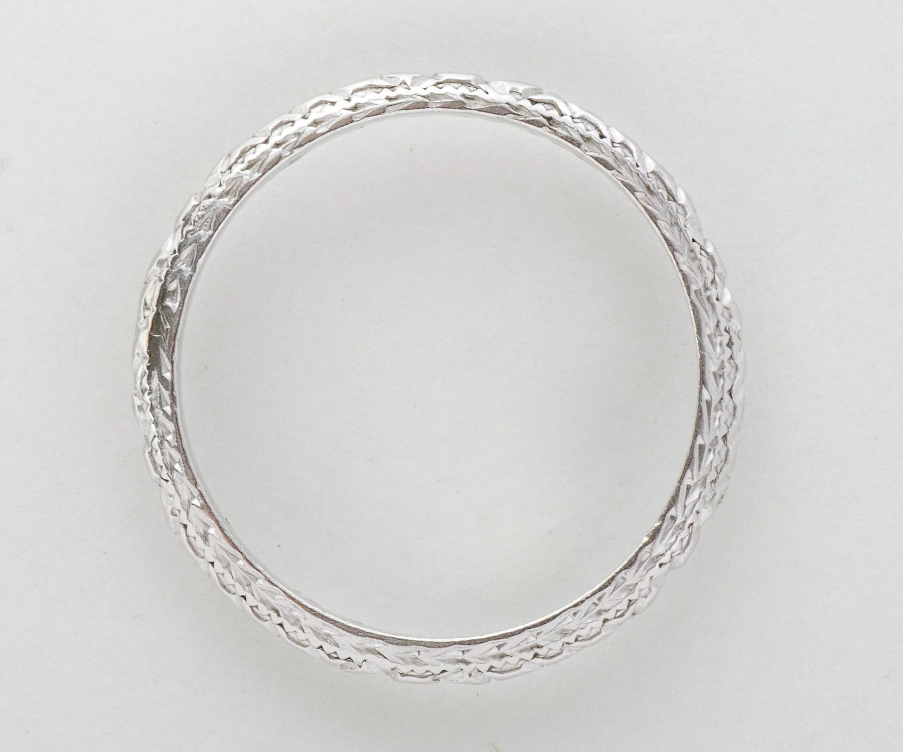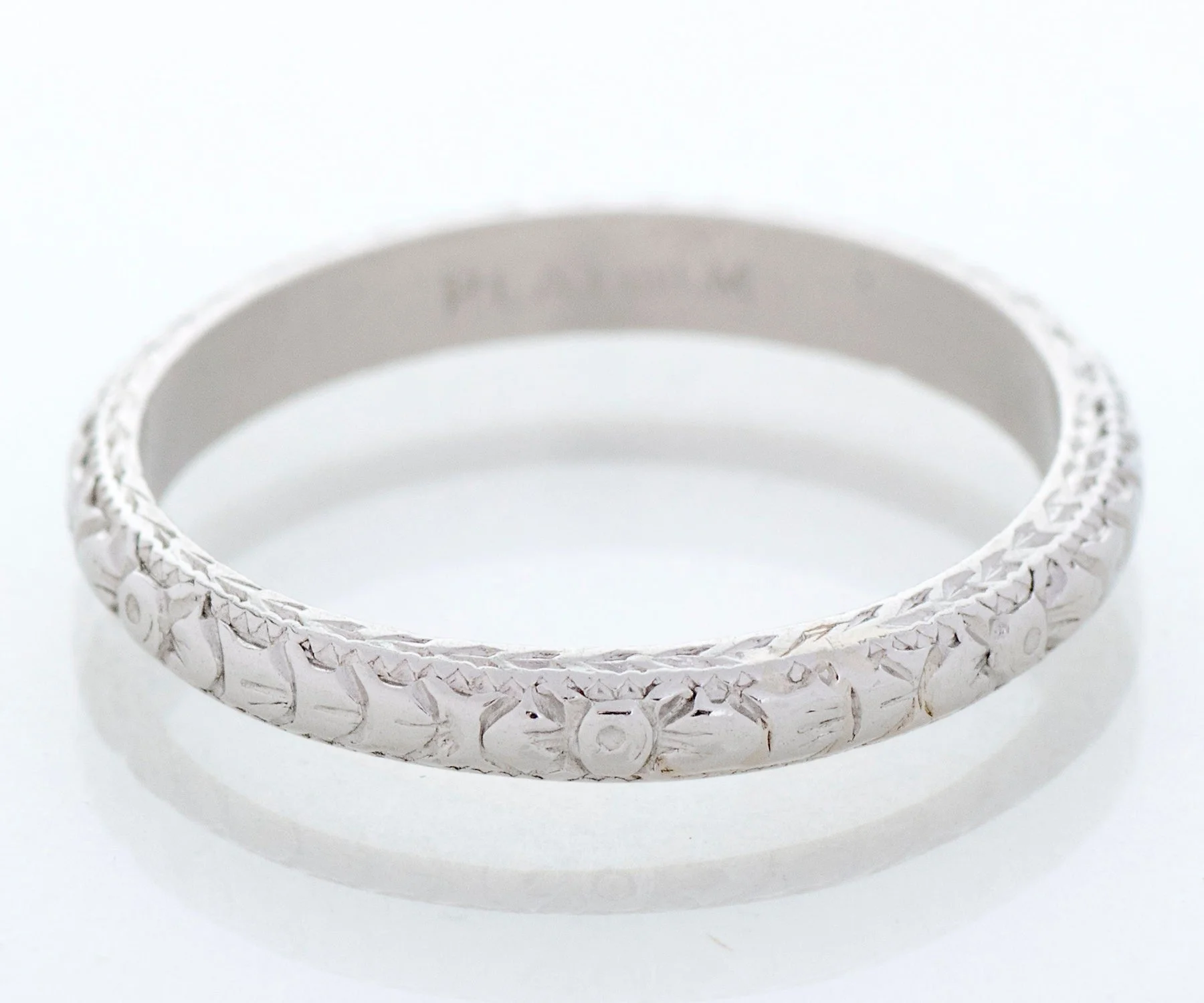 Antique Wedding Band - Antique Platinum Engraved Wedding Band Platinum Engraved Eternity Pattern Ring Size 3 3/4 Band measures approximately 2.25mm wide.