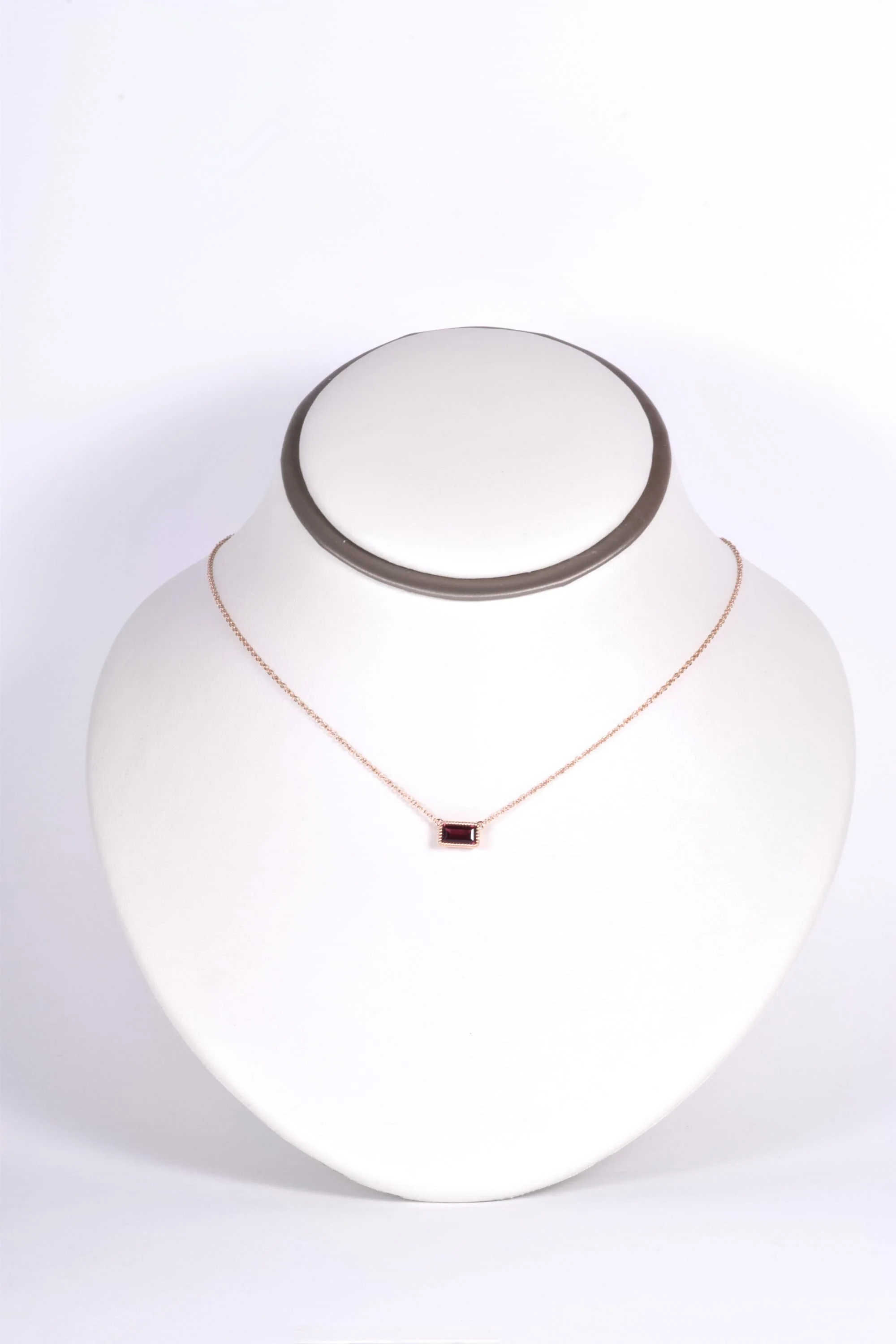 This simple, but classic 18k rose gold necklace can go with you just about anywhere! Designed in house and crafted in Italy, we couldn't be happier as to how this piece turned out. We chose to showcase a stunning rubellite tourmaline in this necklace and you can see why! Adding the beaded framework around the bezel set gemstone only accentuates the piece more. The combination of the rose gold setting with the red tourmaline is a perfect marriage! Wear this lovely necklace on its own or layered with other complimentary necklaces.