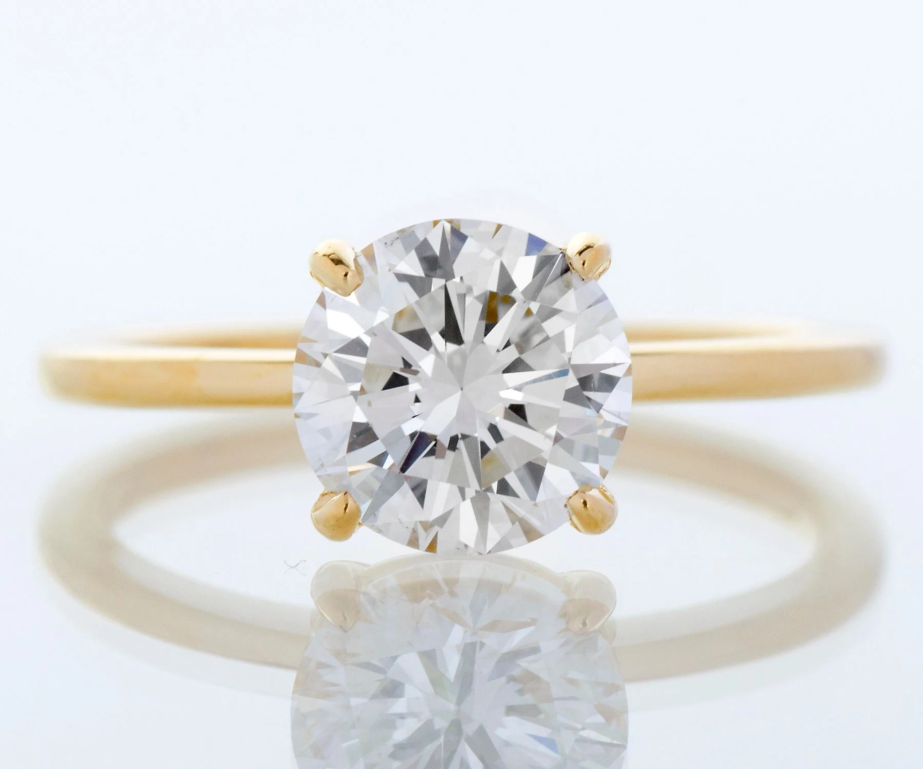 Engagement Ring - Custom 18k Yellow Gold 1.53ct Modern Round Brilliant Diamond Solitaire Engagement Ring