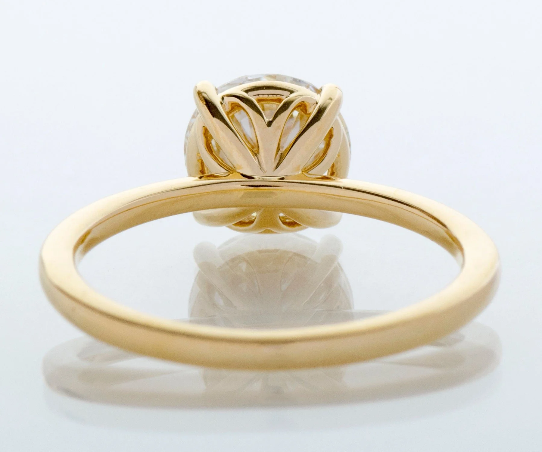 Engagement Ring - Custom 18k Yellow Gold 1.53ct Round Brilliant Diamond Solitaire Engagement Ring 18k Yellow Gold Round Brilliant Diamond =1.53ct SI1/I (GIA Certified - shared upon request) Ring Size 6 (ring is sizable) Ring measures approximately 7.4mm at center, back of band is 1.7mm wide.