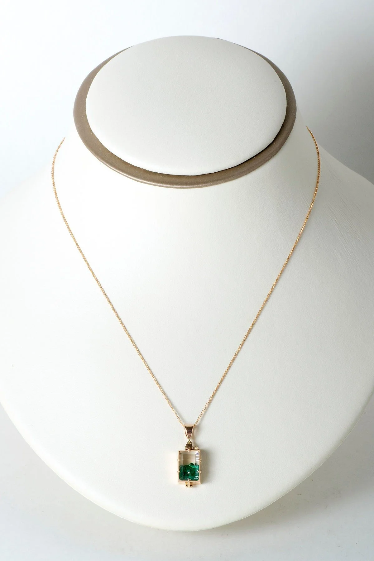 Locket Necklace - 14k Rose Gold Rock Crystal Quartz Floating Natural Emerald Locket Necklace