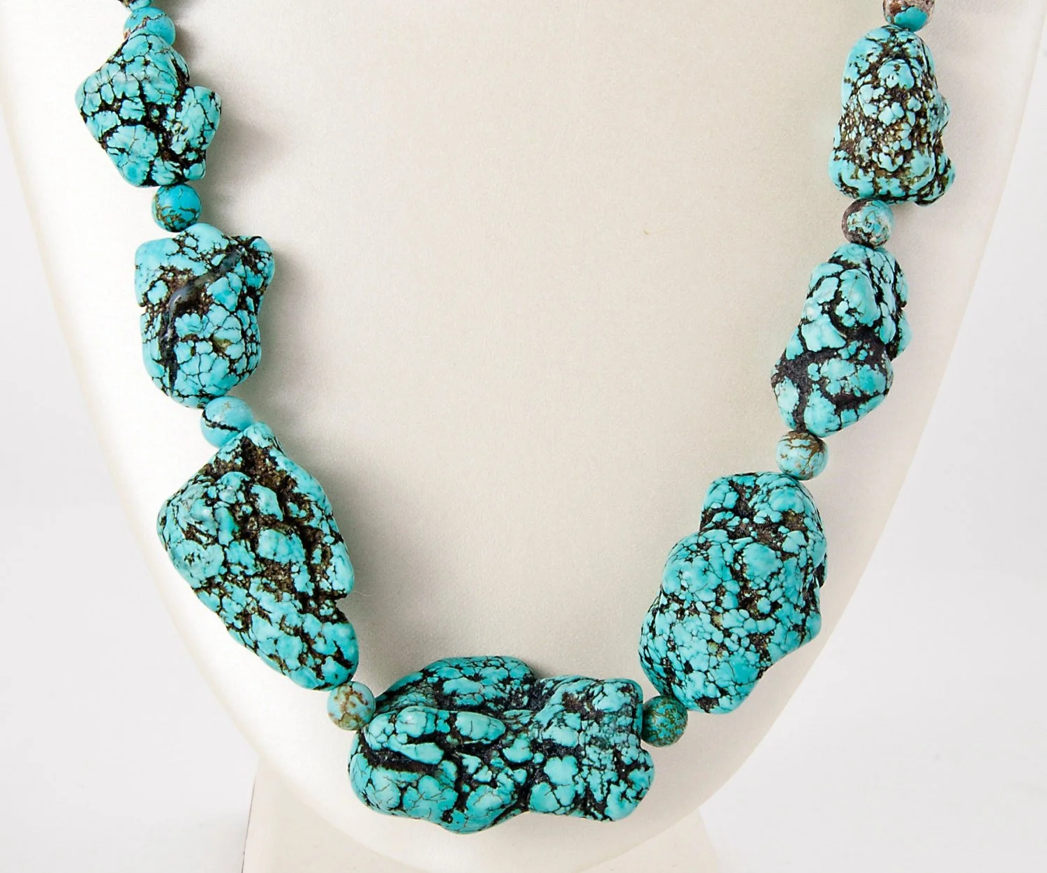 What a fabulous vintage Native American piece! Talk about pop of color! We have not come across any other chunky turquoise nugget beads quite like these and the lucky new owner will certainly enjoy the compliments she will receive when wearing this rare find!