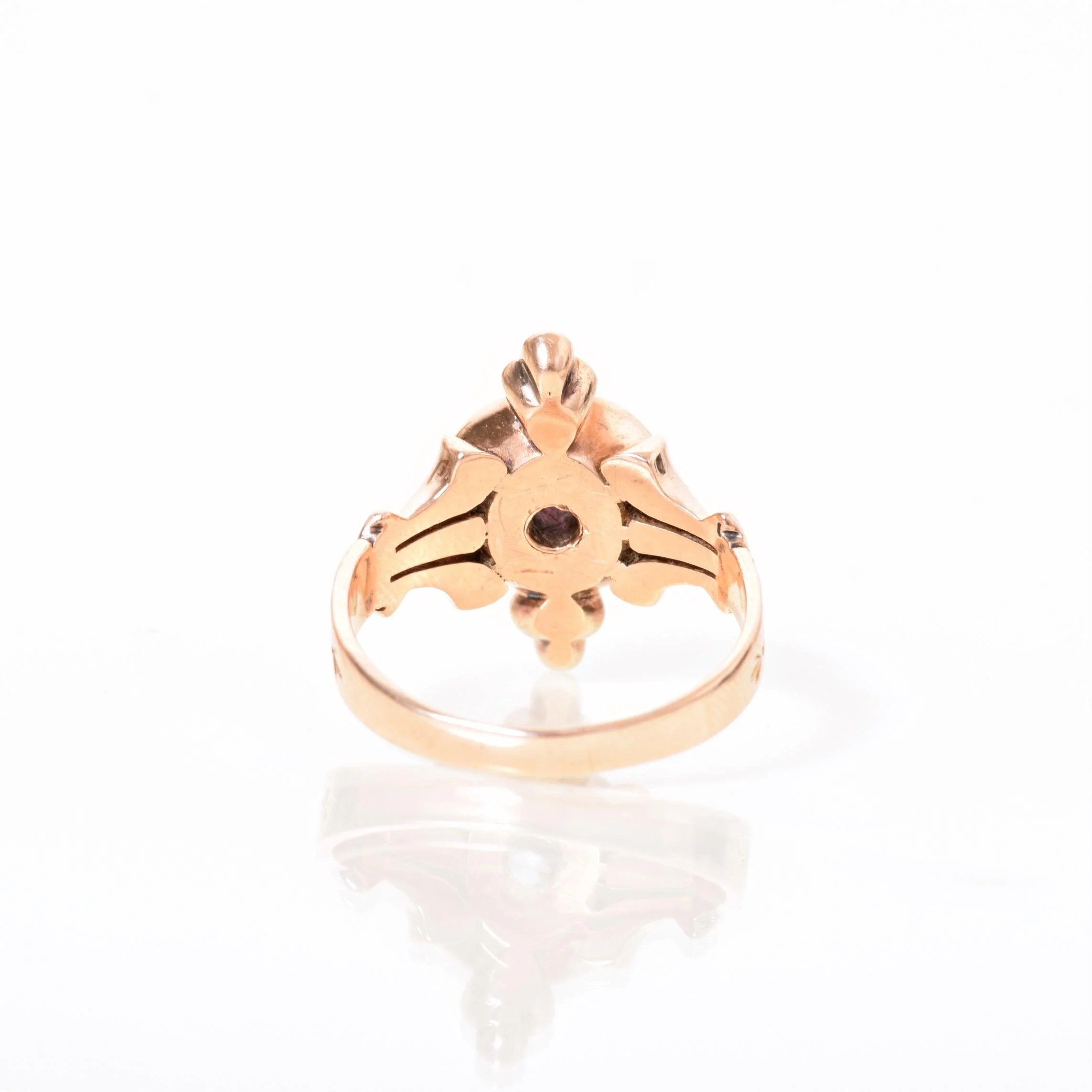 Victorian 10k Rose Gold Ring: Turquoise Diamond Seed Pearl, Size 5.25