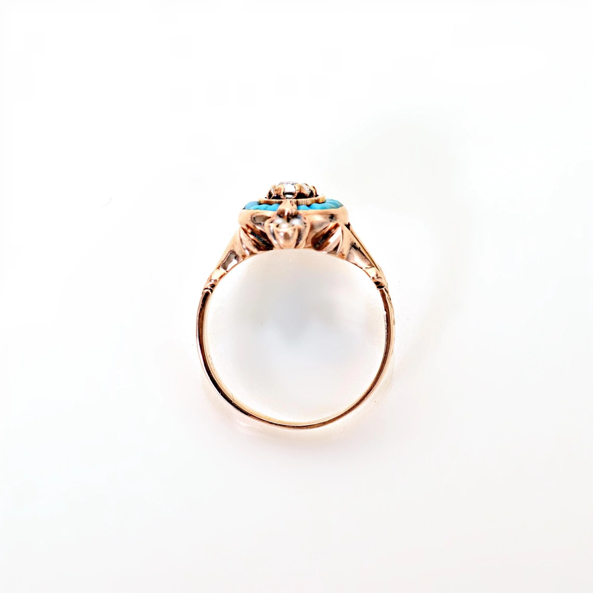 Antique Ring - Antique Victorian 10k Rose Gold Turquoise & Diamond Ring