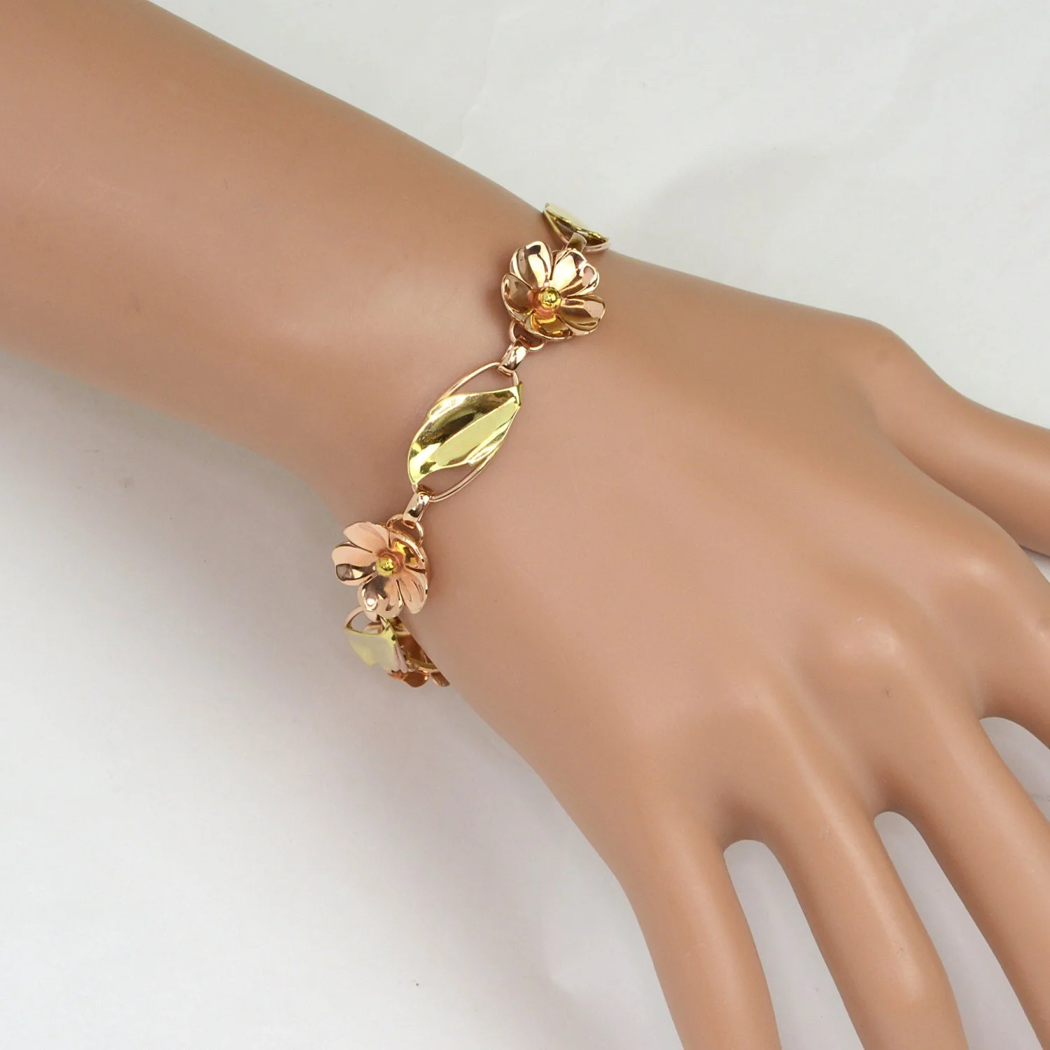 Vintage Flower Bracelet 1940s Rose Gold Green Gold Length: 7" long
