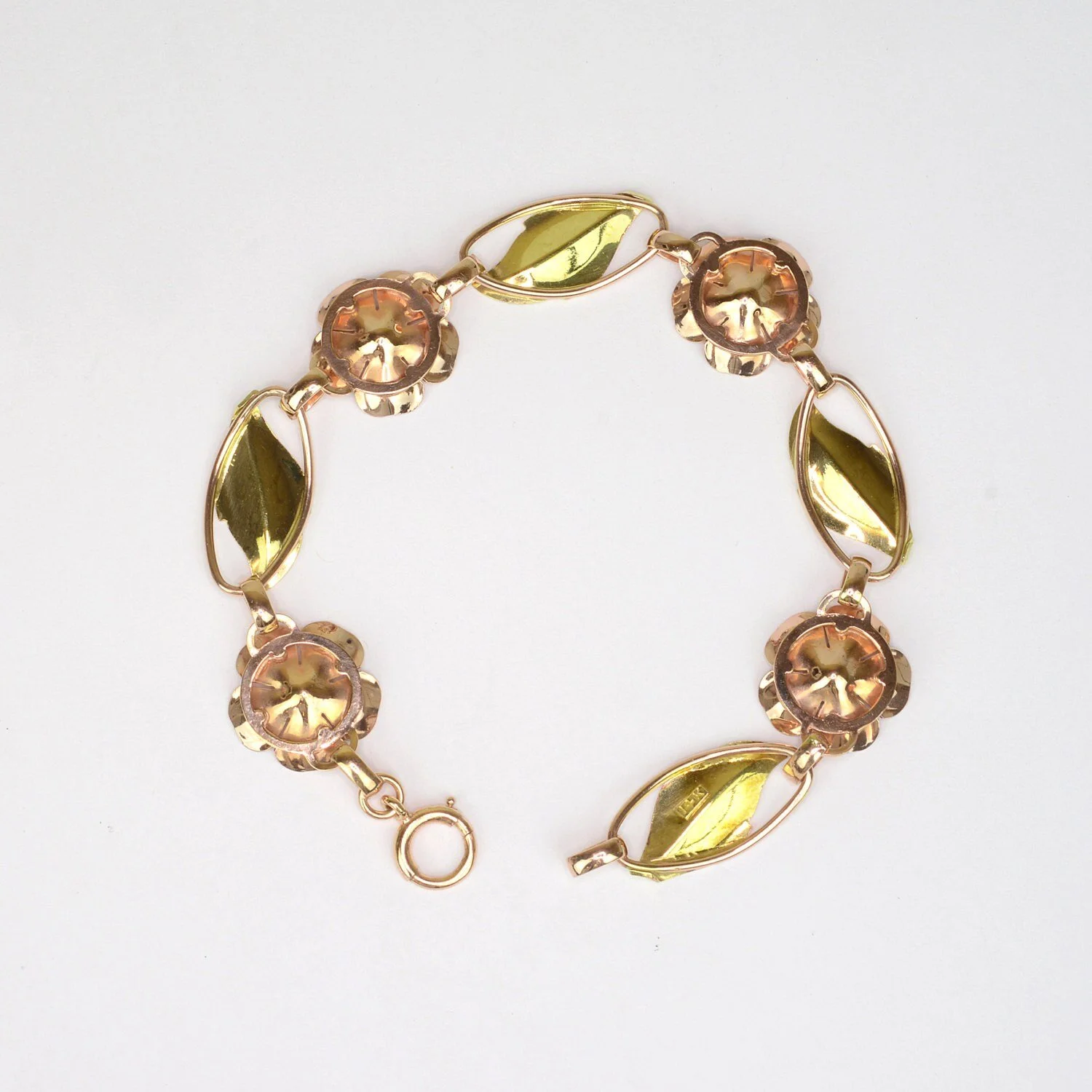Vintage Bracelet - Vintage Flower and Leaf Bracelet in Rose Gold and Green Gold