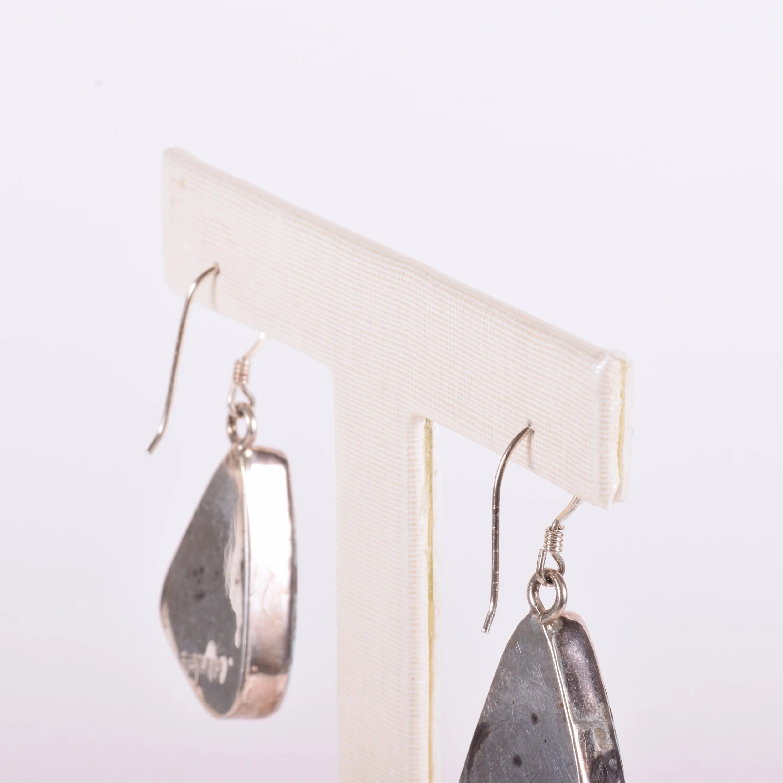 Vintage Earrings - Native American Sterling Silver Spiderweb Turquoise Dangle Earrings Sterling Silver Spider Web Turquoise Earrings measure approximately 1 5/8" (drop length) and 1/2" at widest point.