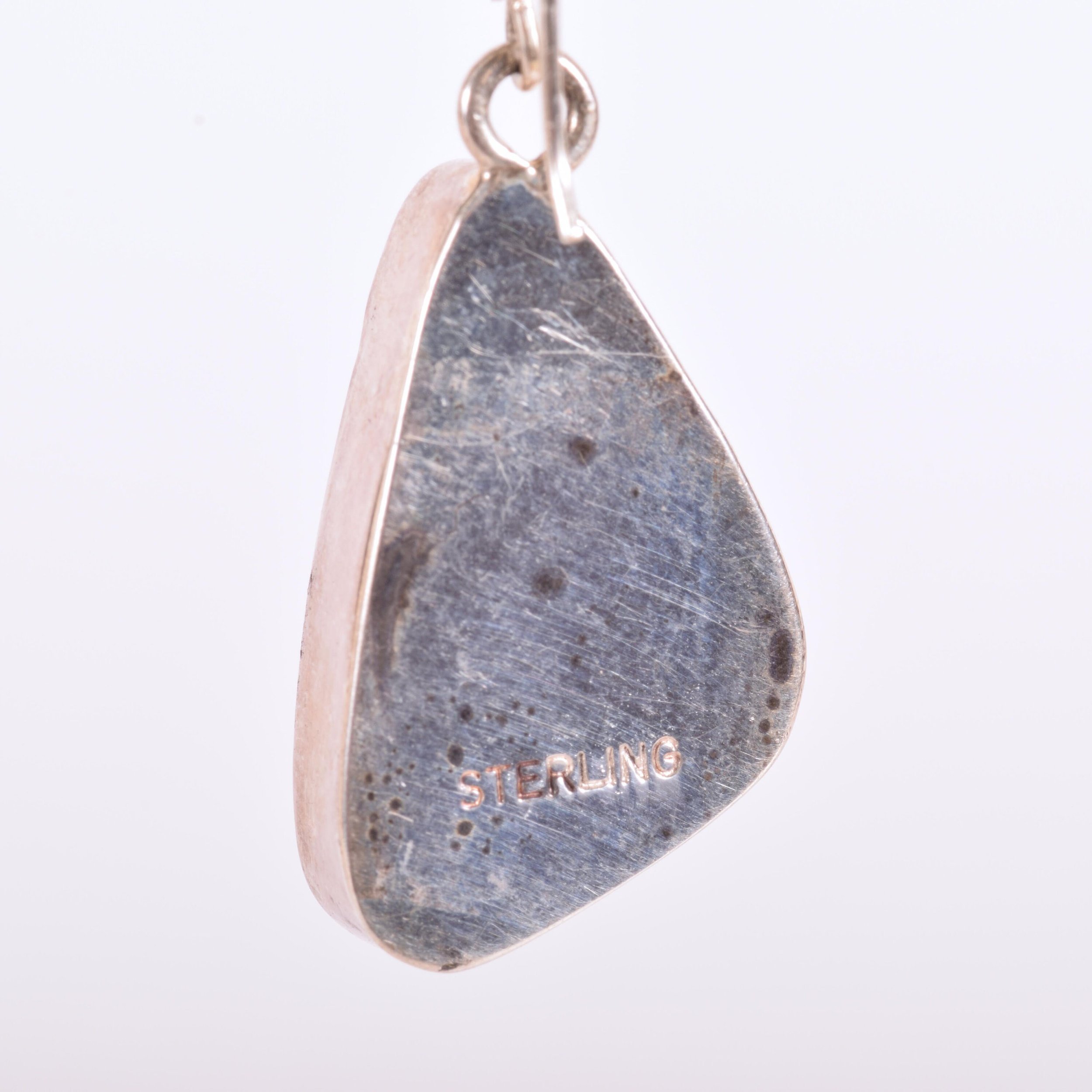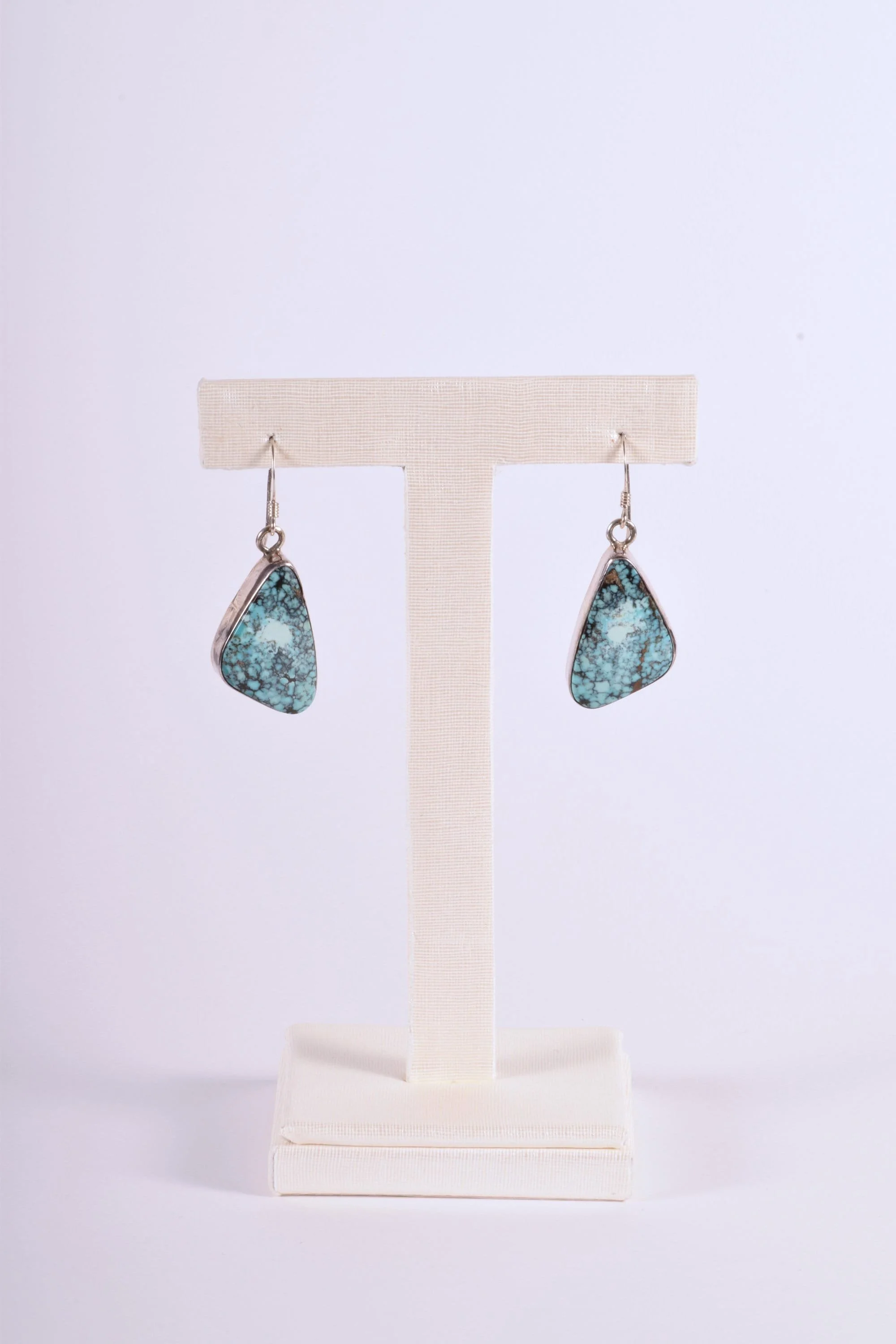 Enchanting spider webbed matrix in turquoise, one of the rarer types of mined turquoise. This is a great pair of vintage Native American dangle turquoise earrings in sterling silver. The turquoise stones are bezel set.
