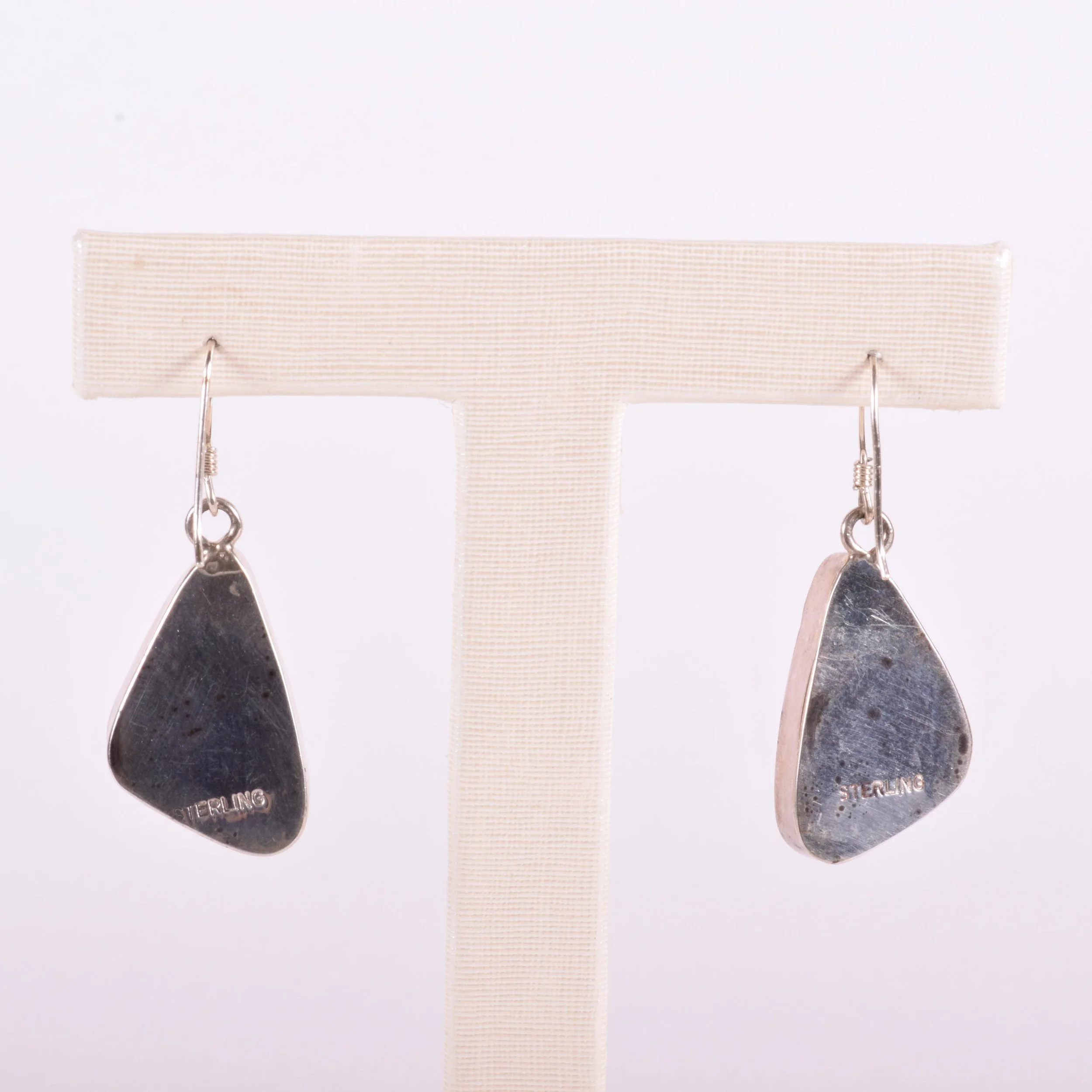 Vintage Earrings - Native American Sterling Silver Spiderweb Turquoise Dangle Earrings Sterling Silver Spider Web Turquoise Earrings measure approximately 1 5/8" (drop length) and 1/2" at widest point.