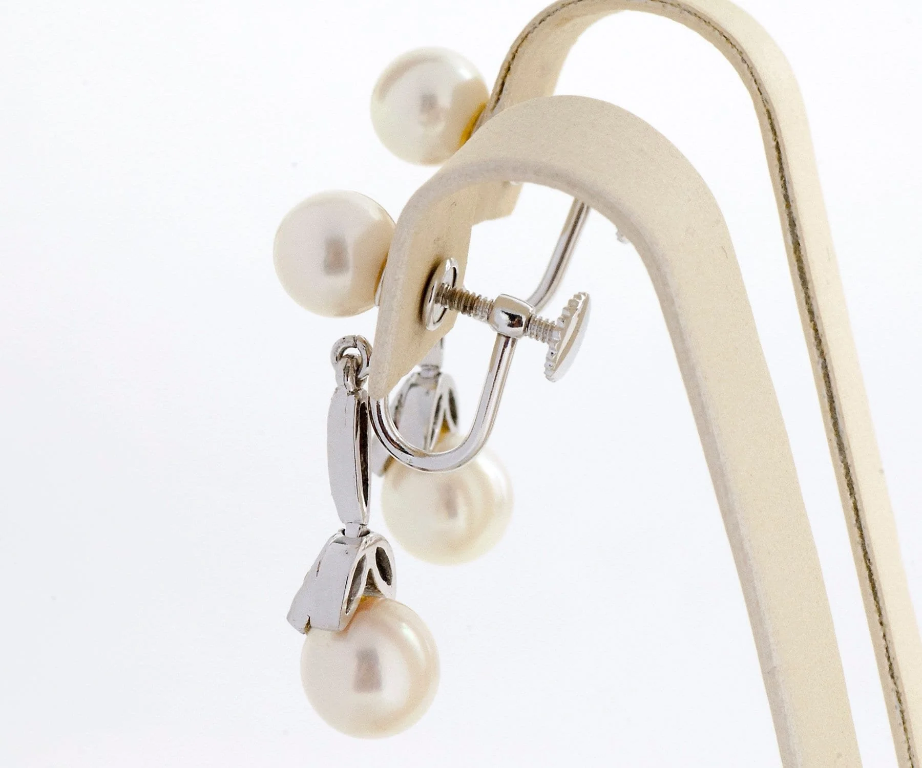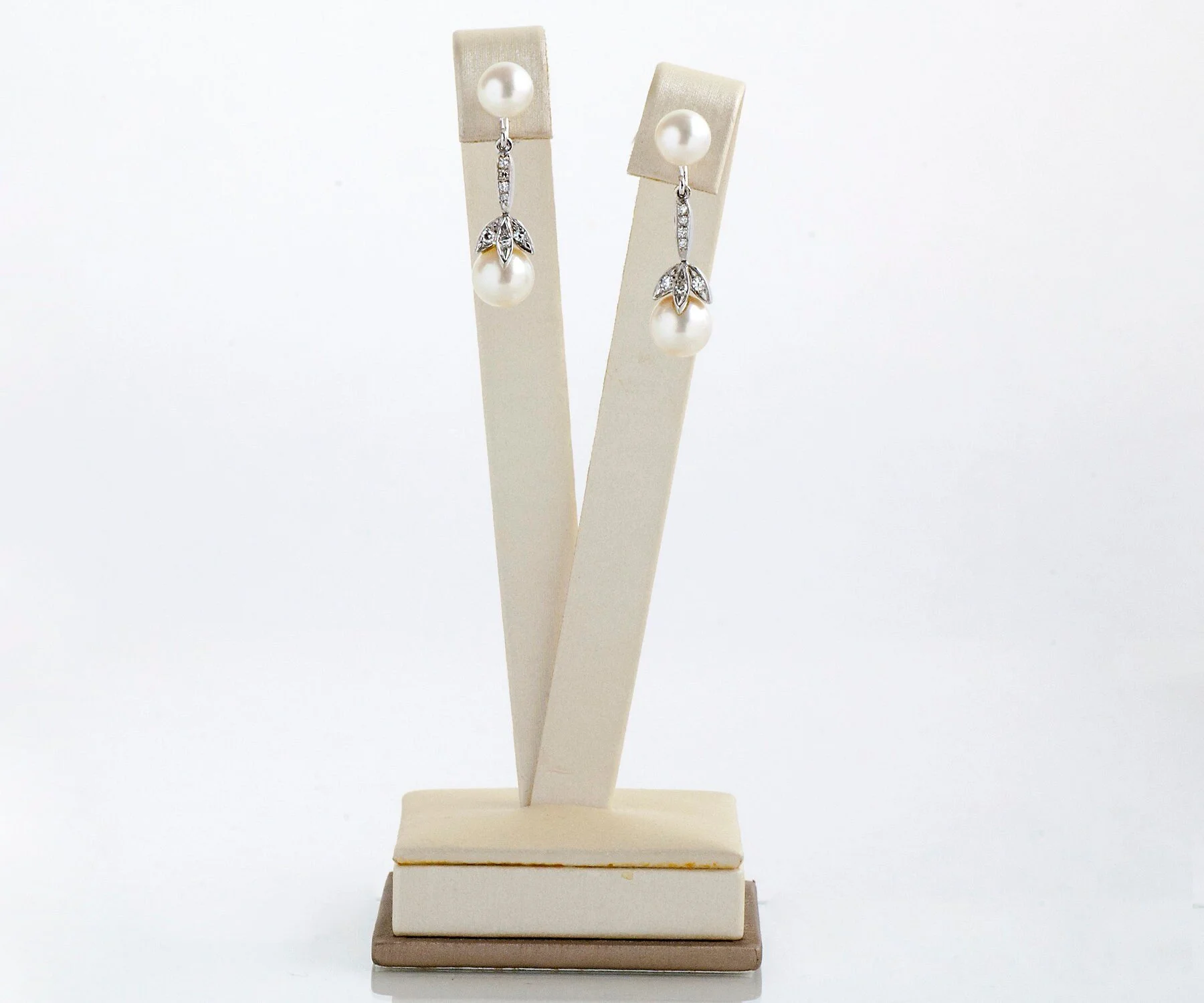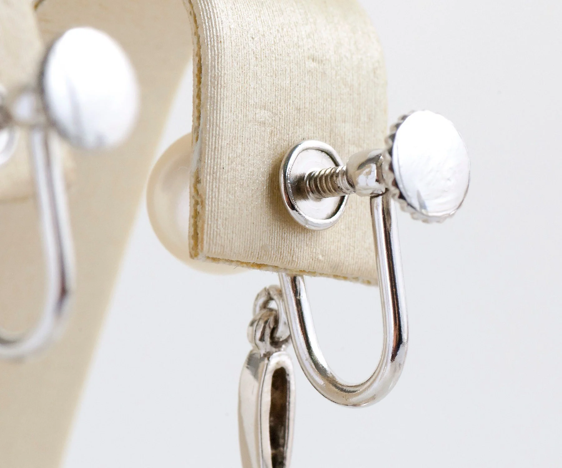 Vintage Earrings - Vintage 14k White Gold Cultured Pearl & Diamond Dangle Earrings