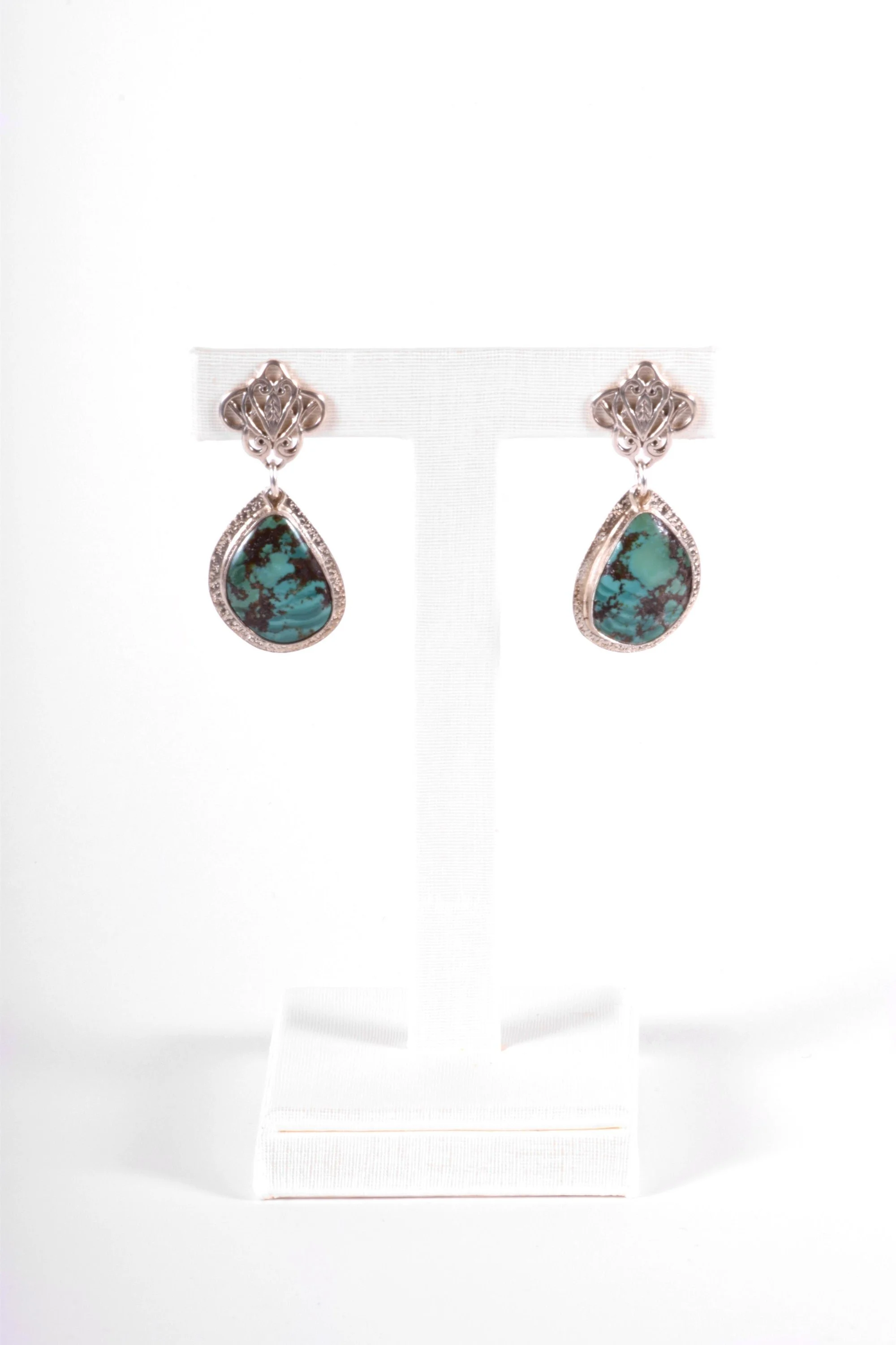 Vintage Earrings - Vintage Sterling Silver Native American Ralph SenaTurquoise Earrings Sterling Silver Green Turquoise Earrings measure approximately 1 5/8"(Drop length) and just over 5/8" at widest point.