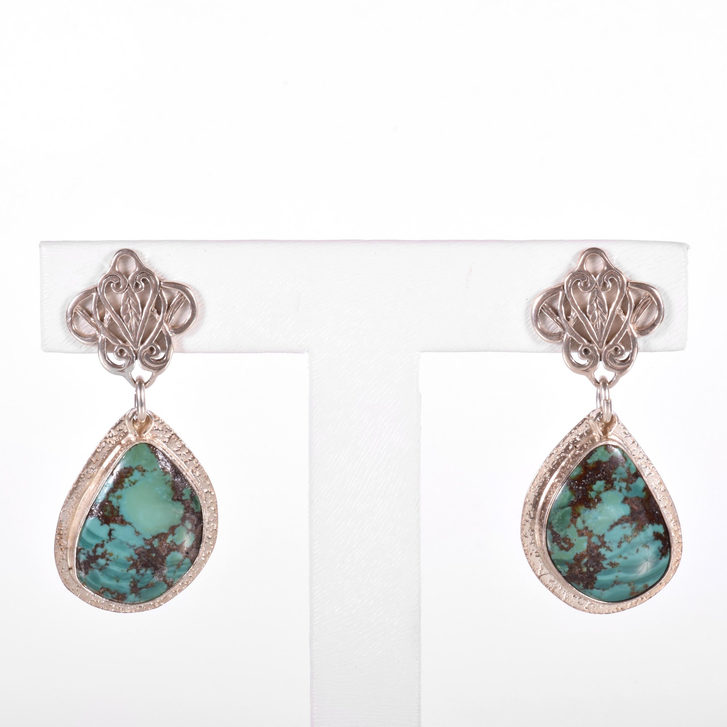 Vintage Earrings - Vintage Sterling Silver Native American Ralph SenaTurquoise Earrings Sterling Silver Green Turquoise Earrings measure approximately 1 5/8"(Drop length) and just over 5/8" at widest point.