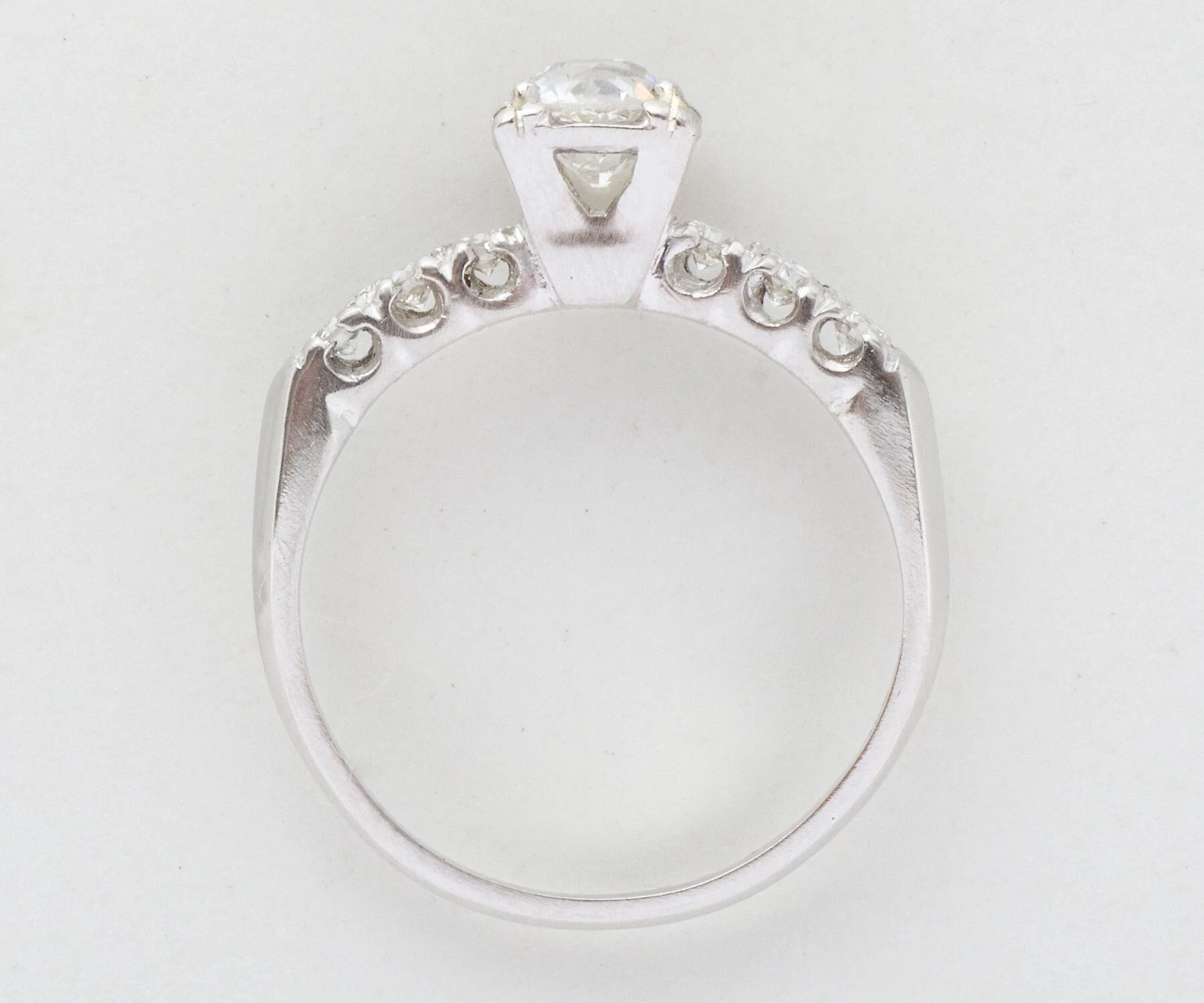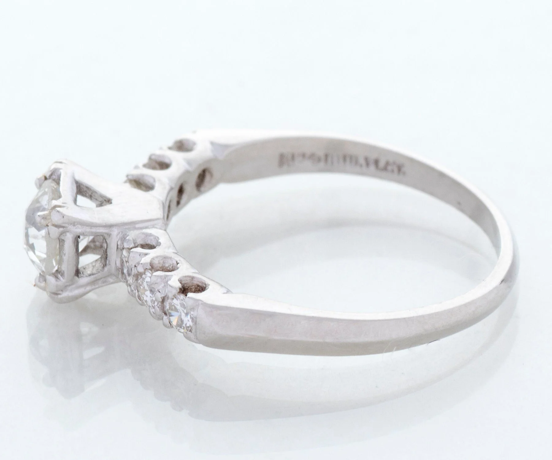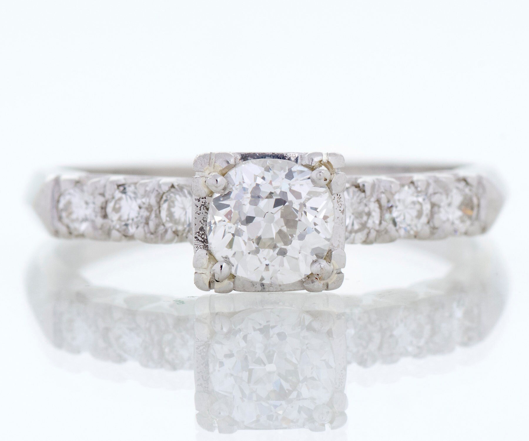 Vintage Engagement Ring - Vintage 1930's Platinum Diamond Engagement Ring 1930's Platinum European Cut Center Diamond =.44ct VS2/I 6 Transitional Cut Side Diamonds =.18ct VS/G-H Ring Size 4.75 (sizable) Ring measures approximately 5mm at center, back of band is 1.8mm wide.