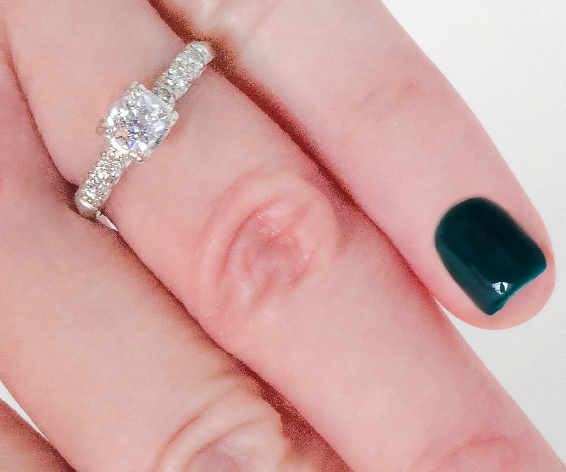 The classic vintage diamond engagement ring from the 1930's is just timeless. This always stylish ring holds a lovely European cut diamond at its center and is adorned by six transitional diamonds. The transitional cut diamonds were the bridge between European cut and early modern cut diamonds. They were less chunky than the European cut diamonds, but had a little more consistency in shape. This charming engagement ring can be paired up with a wedding band of any era.