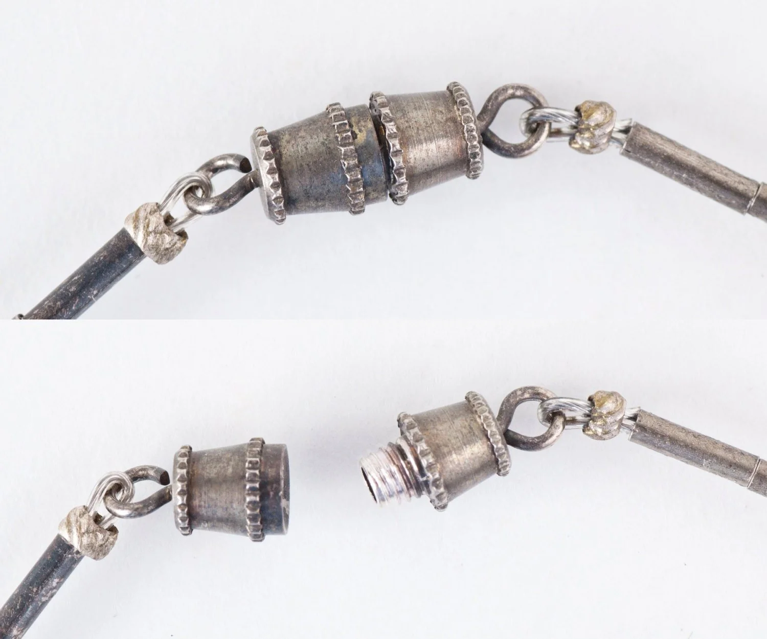 Vintage Necklace - Vintage Sterling Silver and Turquoise Nugget Beaded Necklace Sterling Silver Turquoise Nuggets Necklace measures approximately 28" long.