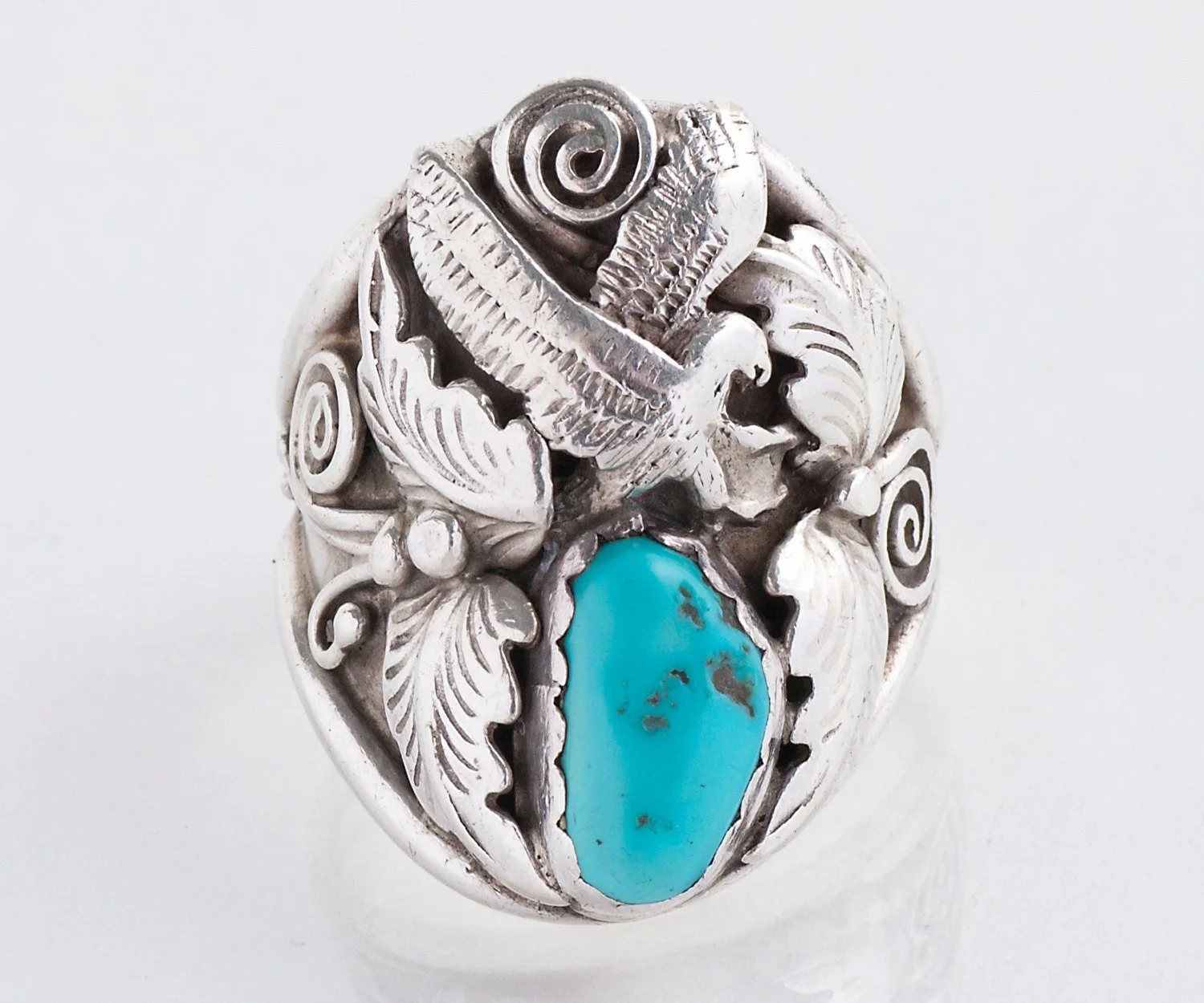 Vintage Turquoise Ring - Vintage Navajo Men's Sterling Silver and Turquoise Eagle Ring