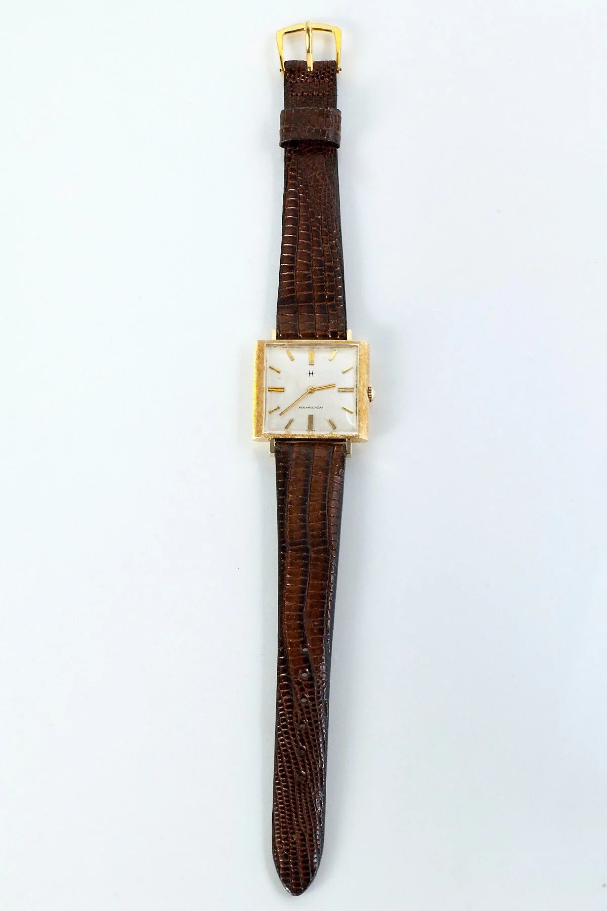 Vintage Watch - Vintage 1960's Men's Hamilton 14k Yellow Gold Leather Strap Watch